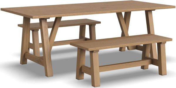 Create the perfect setting for sharing meals together with the Trestle Dining Set. Its warm, modern rustic design features appealing lines and a natural oak finish, welcoming family and friends to gather and bond.Read More