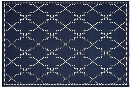 Marina is an elegant new introduction for indoor or outdoor use and features a 100% polypropylene looped yarn made in Egypt. It features a classic neutral palette using high contrast colors like black, ivory, deep navy, sand and cool gray. The collection includes casual but sophisticated patterns like updated geometrics and simplified traditionals that all feel fresh but timeless