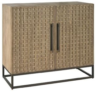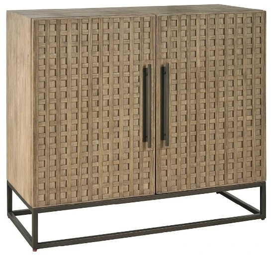 The boulder hall chest combines architectural detail with practical storage. Featuring the collection's signature latticework design and a warm boulder medium-brown finish, its two doors open to reveal ample space for organizing essentials.Read More