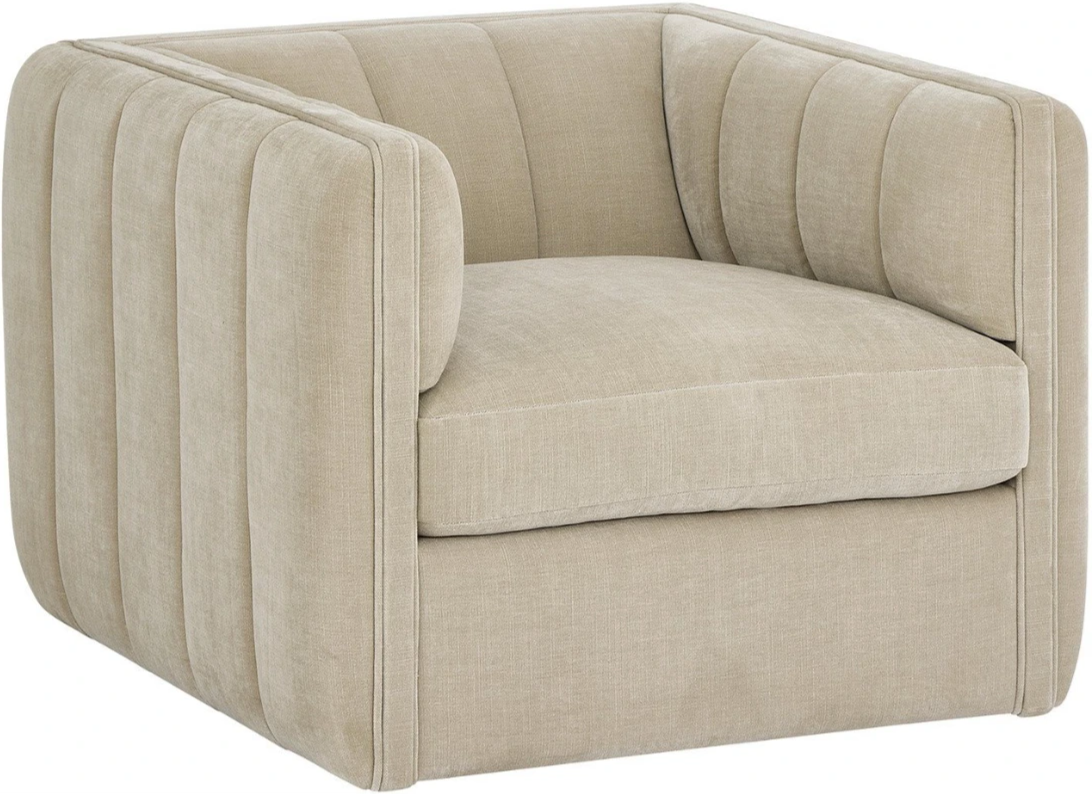 The Vesta swivel chair offers sleek, contemporary comfort with its soft silken fog fabric, crafted from 100% polyester for durability and easy care. Its smooth swivel base allows effortless movement, making it a versatile and stylish addition to living rooms, reading corners, or conversation spaces.Read More