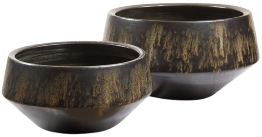 Exquisite set of two ceramic bowls, meticulously crafted of bronze ceramic. Each bowl is adorned with a stunning greenish ivory drip glaze, creating a harmonious blend of elegance and rustic charm.Read More